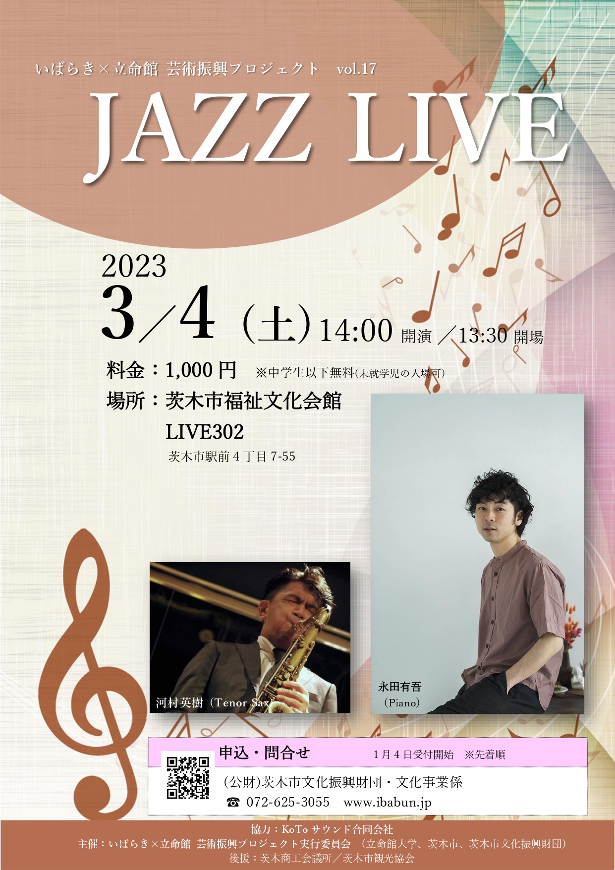 | お問い合わせ | (公財)茨木市文化振興財団 TEL 072-625-3055 |